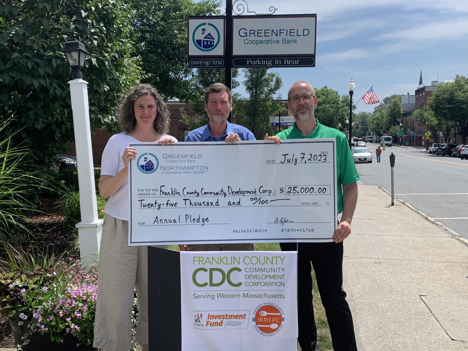 Continuing a tradition of supporting small local businesses and job creation, Greenfield Cooperative Bank announced a $25,000 donation to the Franklin County Community Development Corporation (FCCDC).